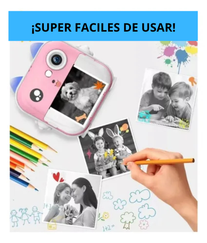 ¡La experiencia definitiva para pequeños fotógrafos! Una cámara resistente, educativa y súper divertida que permite capturar, imprimir, grabar, jugar y crear… ¡todo en un solo dispositivo!