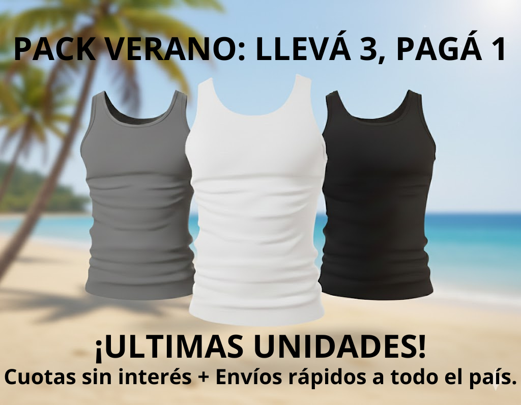Este pack 3x1 de musculosas es ideal para pasar el verano cómodo y fresco. Incluye negro, blanco y gris, colores básicos que combinan con todo. Son livianas, de excelente calidad y súper cómodas, perfectas para entrenar, salir o usar todos los días.