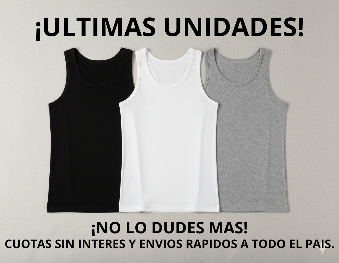Esta promo vuela. Llevate 3 musculosas frescas y cómodas para entrenar y el día a día, pagando solo una. Cuando se termina el stock, se termina la oferta.